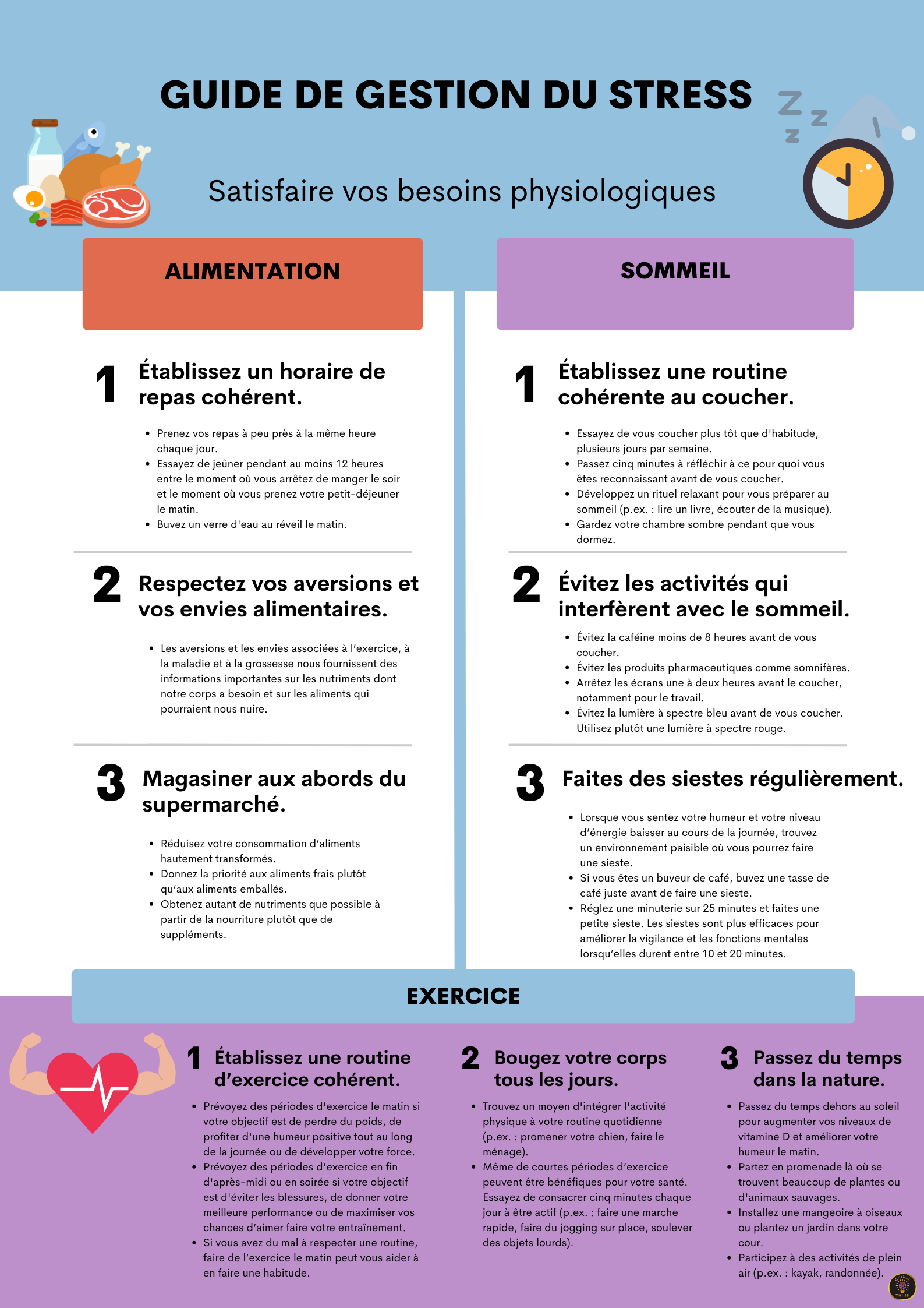 Cet outil de gestion de l'anxiété de quatre pages consiste en une série de questions réflexives conçues pour favoriser une analyse objective des situations génératrices d'anxiété. Les questions sont divisées en quatre catégories : des questions pour évaluer la situation, pour évaluer l'impact de vos croyances, pour évaluer les preuves qui les soutiennent ou les infirment et pour identifier des pistes d'action.