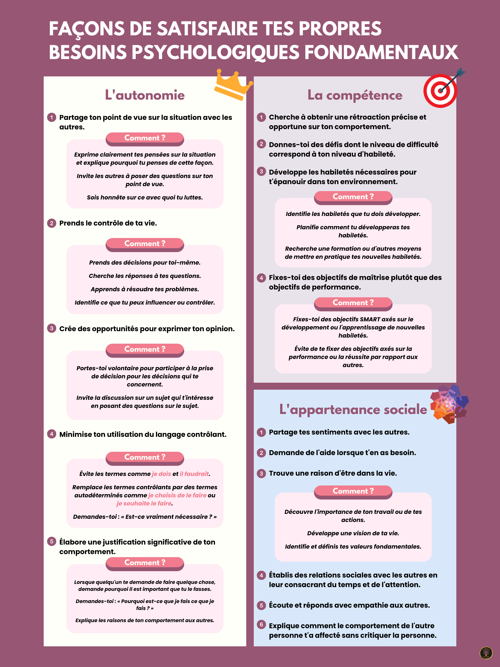 Façons de satisfaire tes propres besoins psychologiques fondamentaux